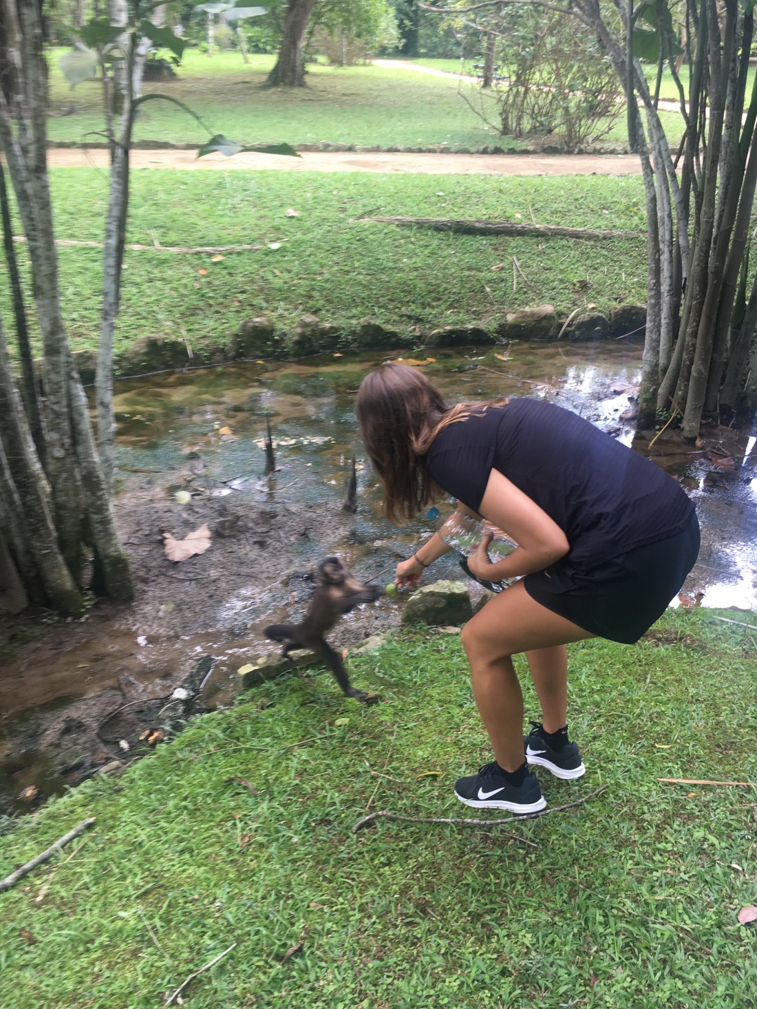 C’est très joli, les arbres sont majestueux, les palmiers sont très hauts et nous rencontrons même une bande de petits singes.