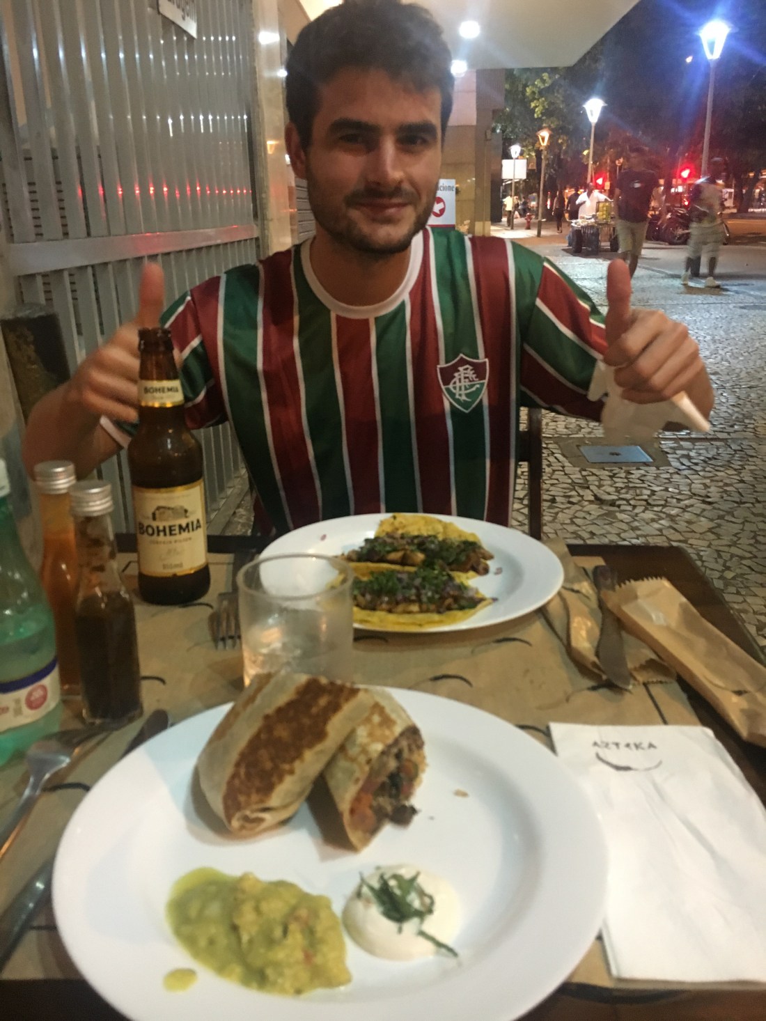 En attendant Paul a fait quelques achats souvenirs, un maillot d’une équipe locale (il y a 4 équipes rivales à Rio) et une superbe casquette.