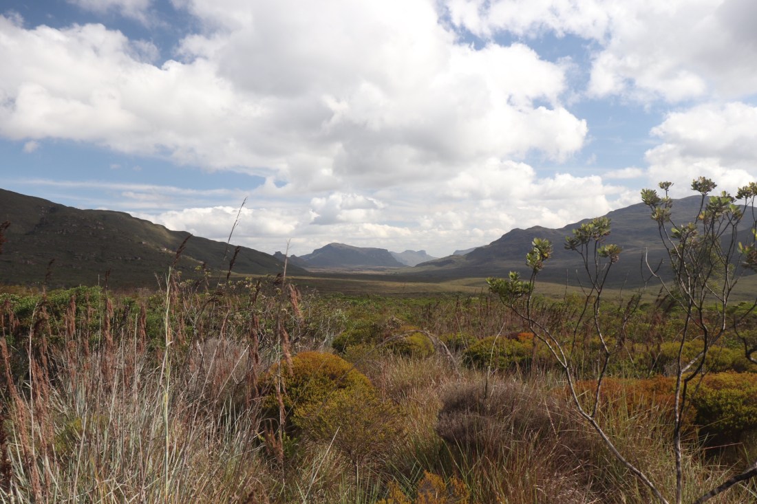 En haut c’est assez étonnant car les sommets sont ici des sortes de plateaux en roche, avec une végétation différente du bas de la vallée.