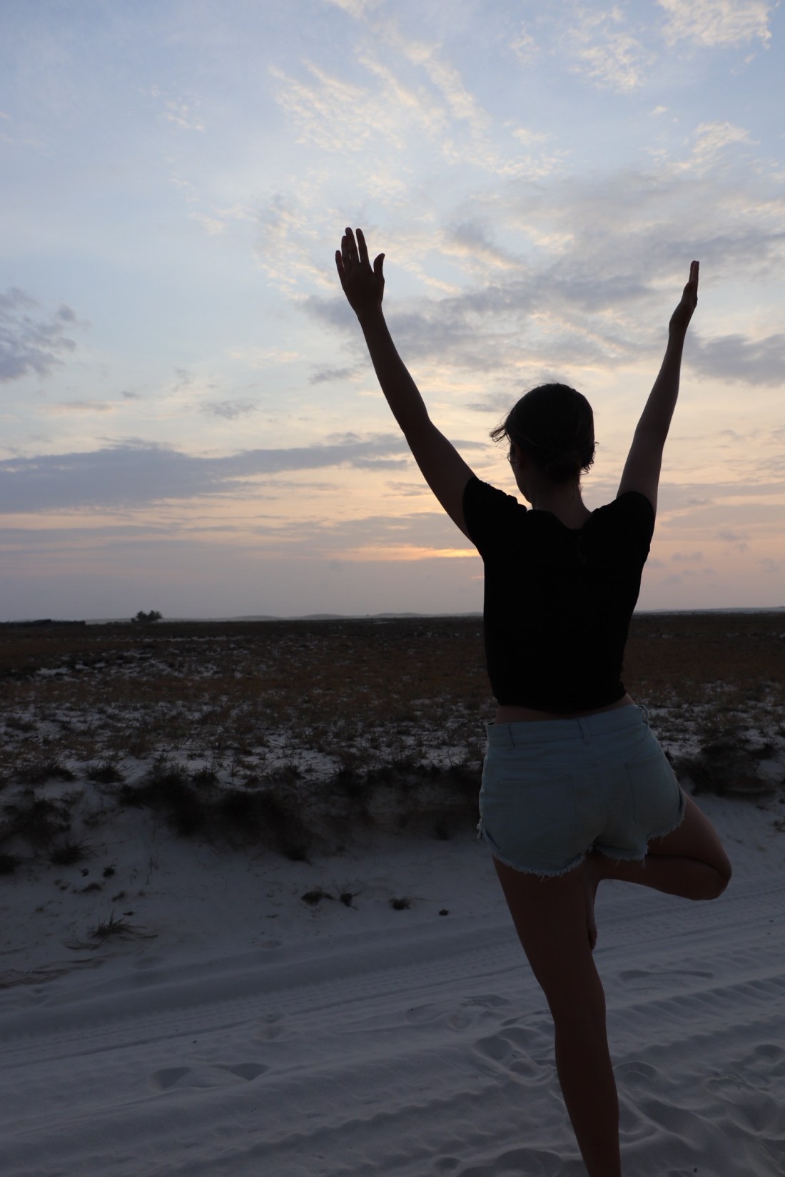 La nuit est bien tombée et c’est la pleine lune, nous sortons donc avec nos frontales sur la première dune. Bien que voilée, la lumière est très forte et nous réussissons à immortaliser nos « ombres de lune ». Un super moment!