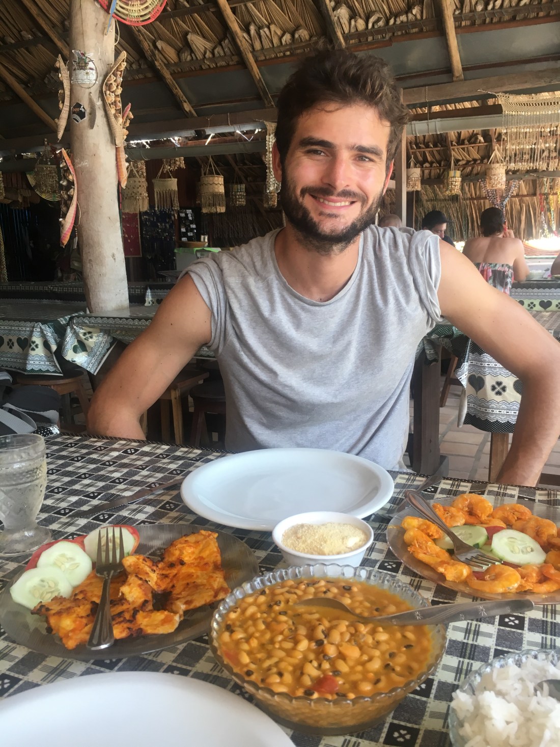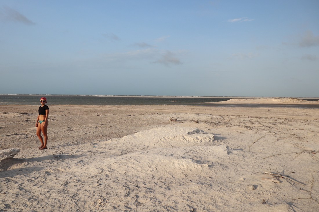 Nous avons décidé de passer la nuit là-bas, pour profiter de la vue sur les dunes et voir la pleine lune sur le désert. Nous déjeunons chez Senior Antônio, réputé pour servir les meilleures crevettes de la région (youpi!). Paul me confirme qu’elles sont en effet délicieuses.