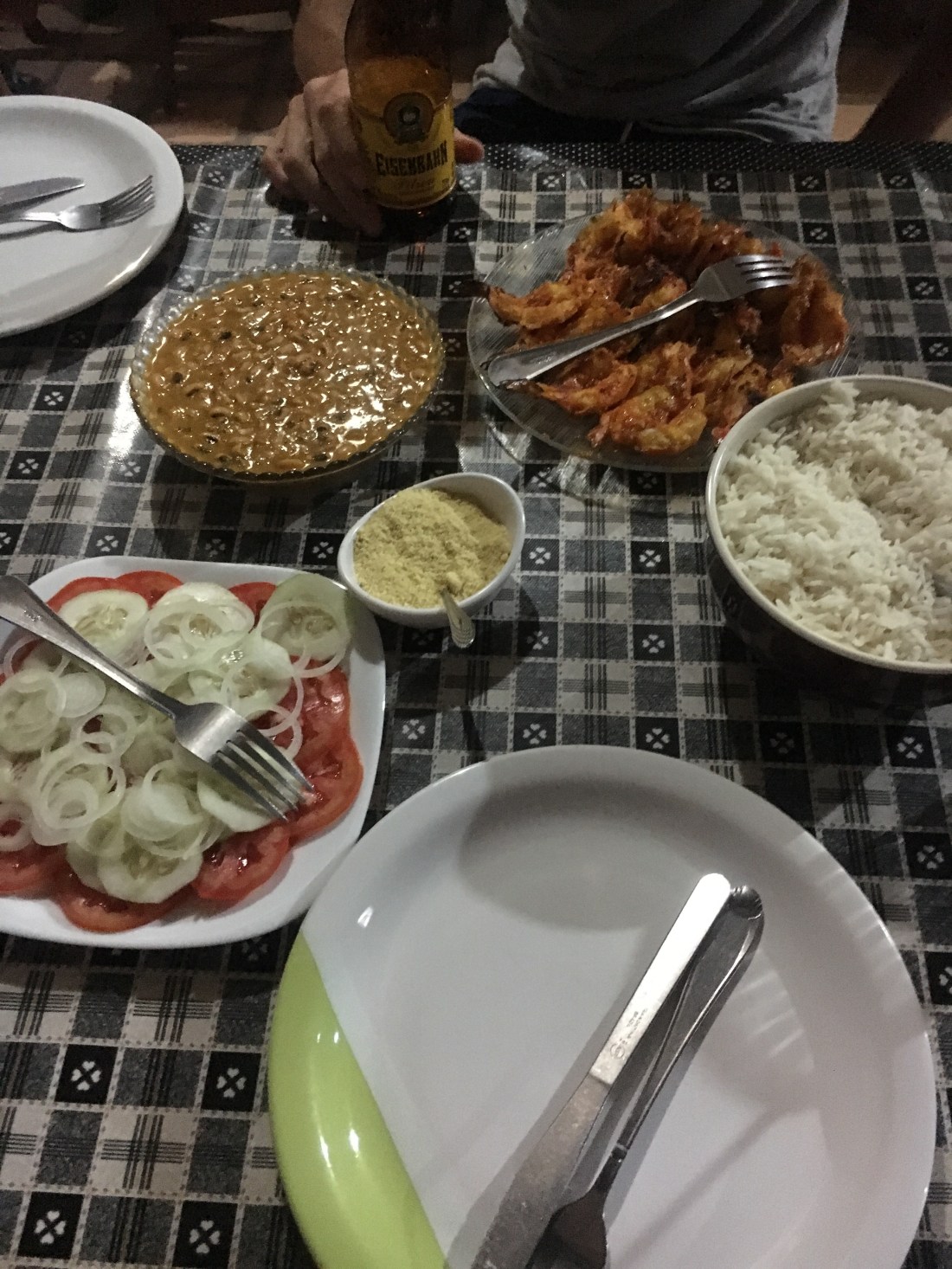 De retour au coucher du soleil, nous nous reposons dans les hamacs avant de dîner (crevettes, bis repetita !).