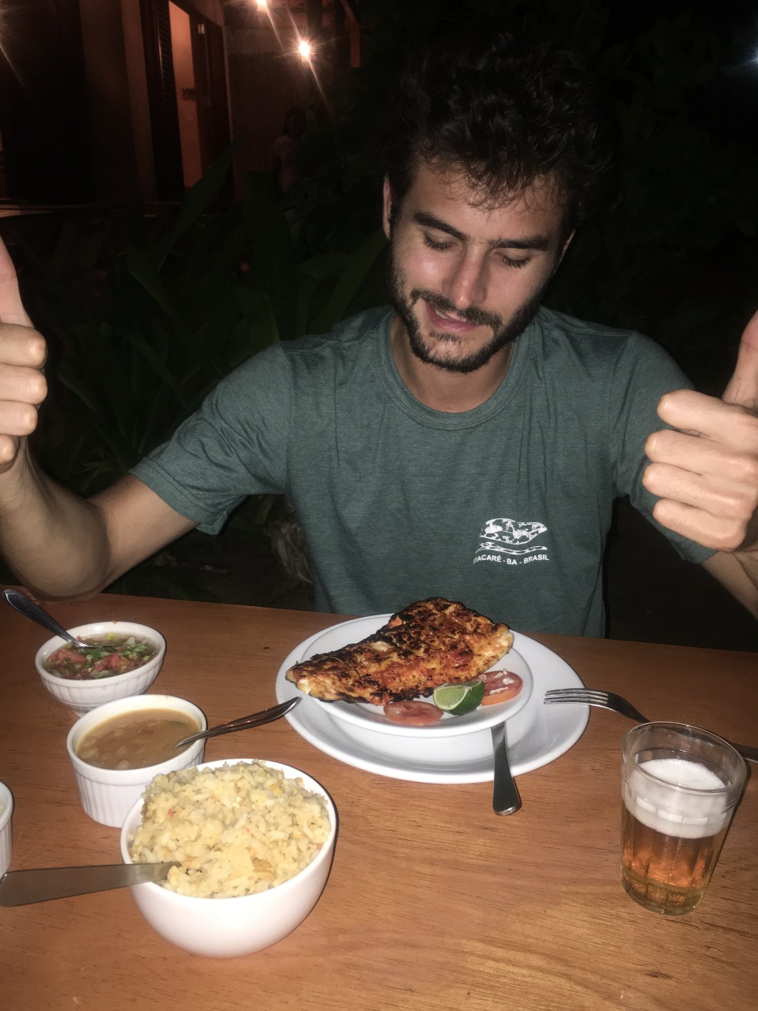 Le soir nous dînons dans un restaurant typique, puis nous allons dans un bar où une fête s’organise (il n’est que 20h30) Paul teste une Cachaca mais visiblement ça n’était pas terrible !