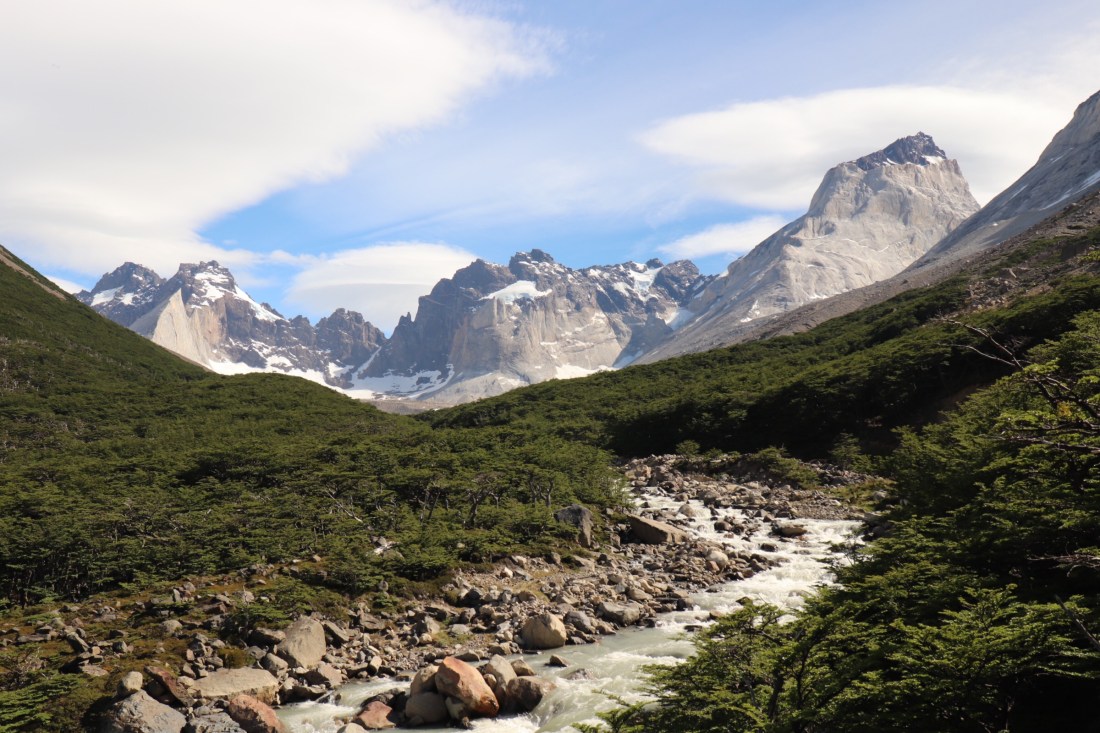 Commence alors la montée dans la Vallée de Francès. Le sentier est très rocailleux au début puis dans une forêt longeant un torrent, nous avons une vue superbe sur le glacier de Francès.