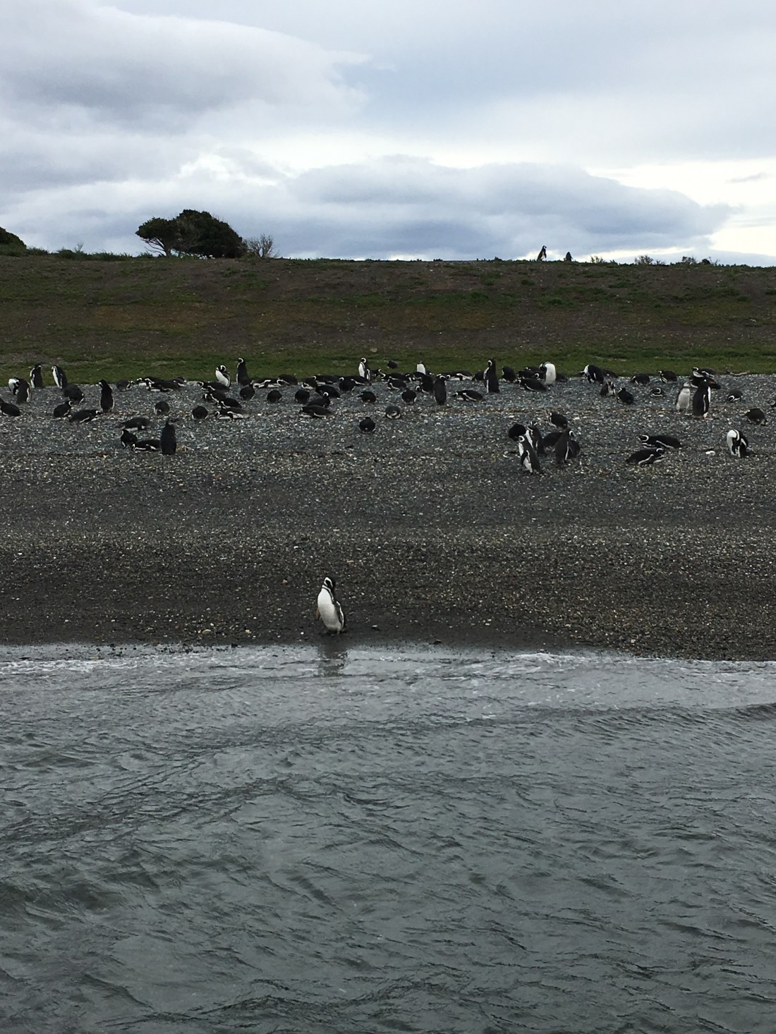 Après une petite heure à naviguer autour de l’île des pingouins nous les voyons enfin! Ce sont des pingouins de Magellan, ils sont assez petits et super super mignons. Nous avons même la chance de voir des jeunes pingouins avec leur pelage gris. Ce sont des pingouins migrateurs ils viennent sur cette île (une réserve naturelle) pour pondre et couver leurs œufs.
