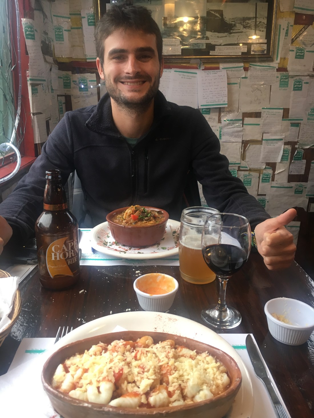Nous redescendons tranquillement et arrivons à 21h30 chez nous. Le temps de prendre une douche bien chaude et nous voici au restaurant, toujours du crabe royal pour Paul (mais une spécialité au parmesan cette fois-ci) et une salade pour moi. Sans oublier du super vin argentin!