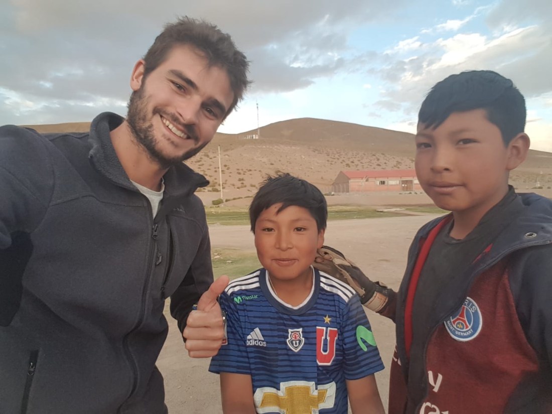 Après la douche je papote avec une famille de français au refuge pendant que Paul se fait des copains pour jouer au foot !