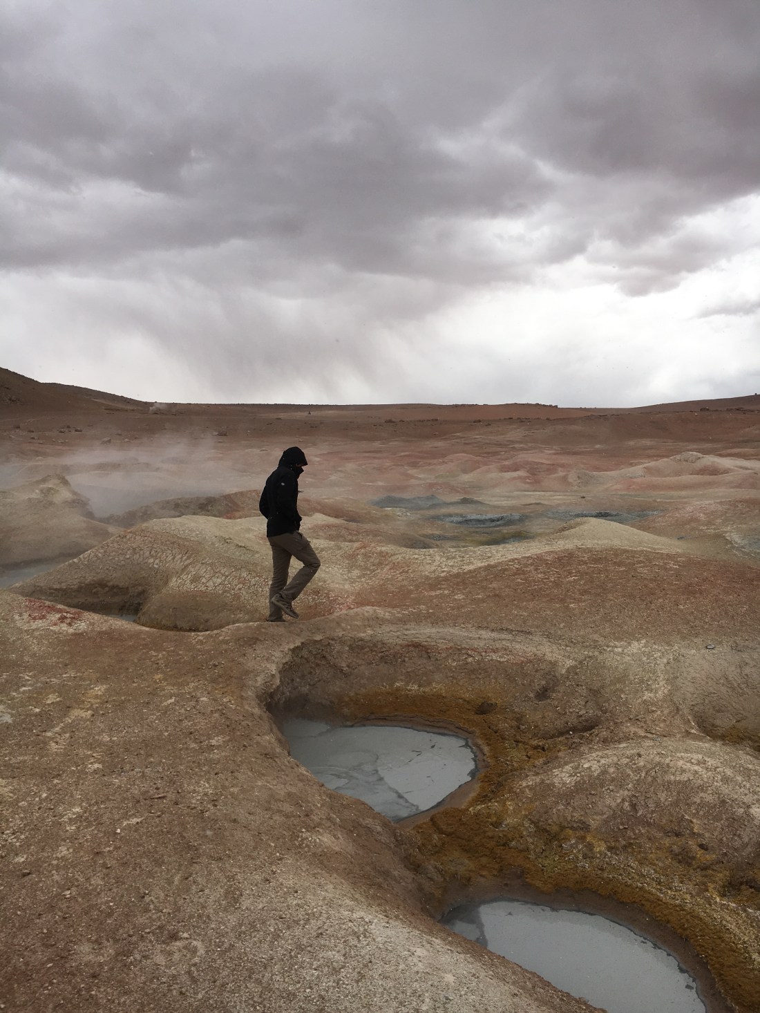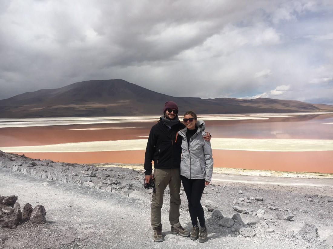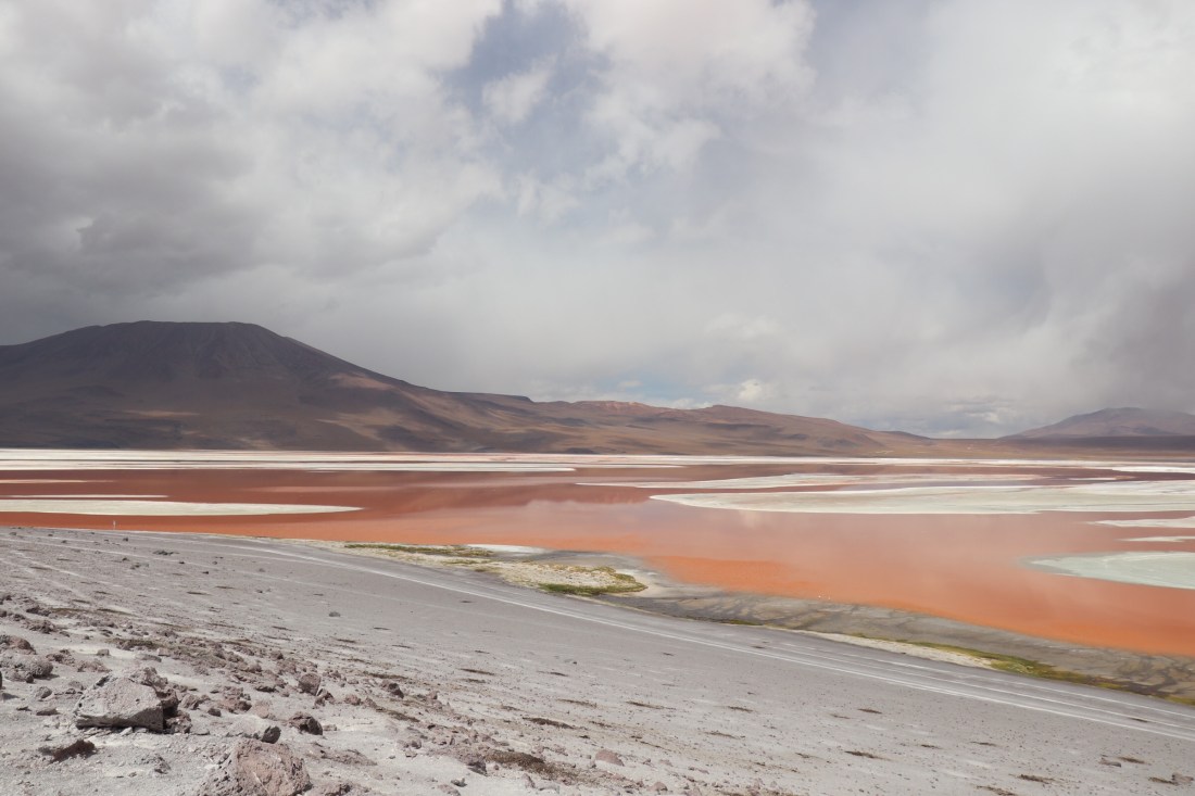 2ème stop à LA lagune colorée, la couleur est rouge/orangée bordée de blanc c’est superbe. Il y a même des flamants rose dedans et des lamas à côté.