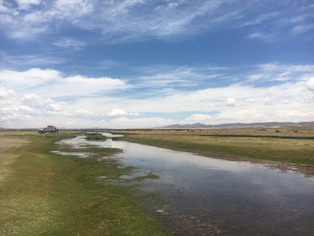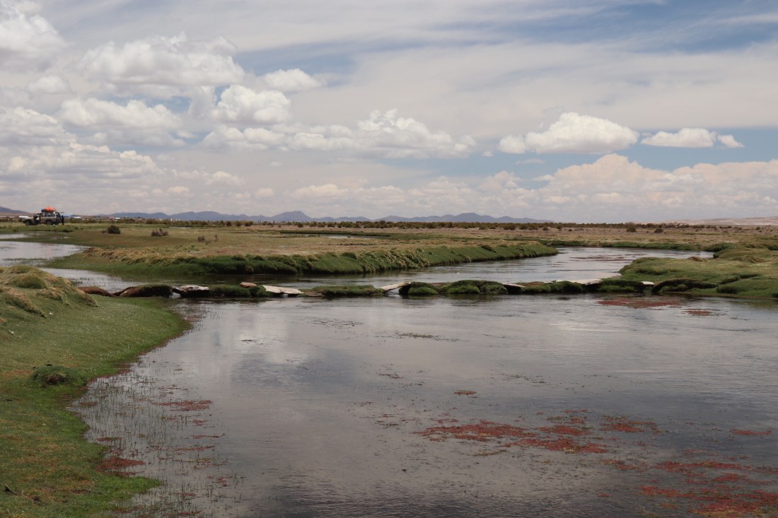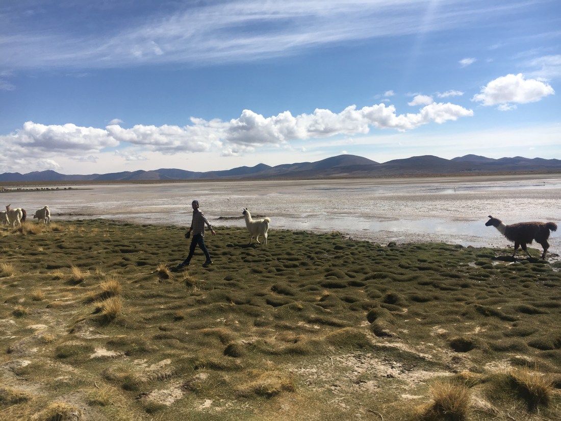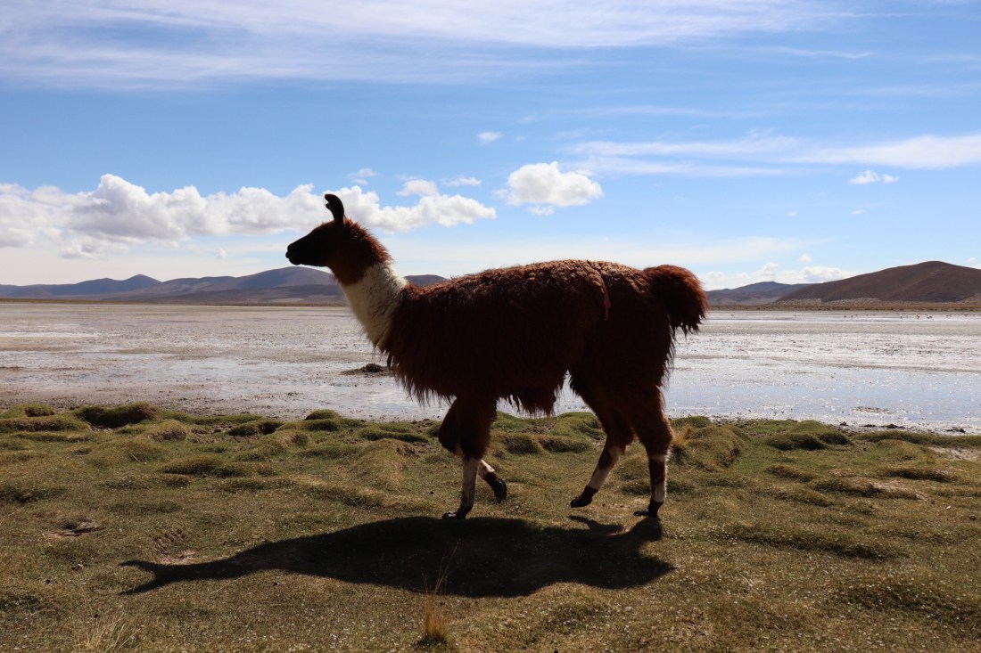 Après toute cette rocaille, un peu d’eau ! Une belle lagune avec surtout un troupeau de lamas.