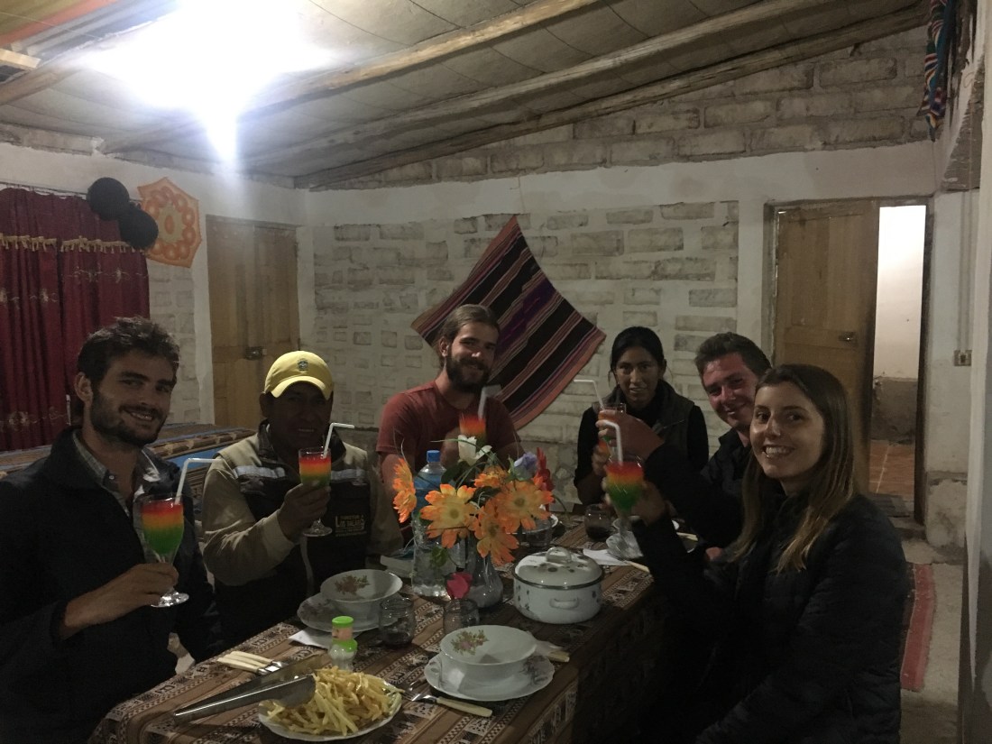 On rentre ravis et affamés, Mabel a préparé des lasagnes, pas incroyables mais nous dévorons quand même. D’autant que nous avons sortis notre bouteille de vin de la Bodega Colomé et que nous avons aussi eu de beaux cocktails (sans alcool) aux couleurs de la Bolivie.