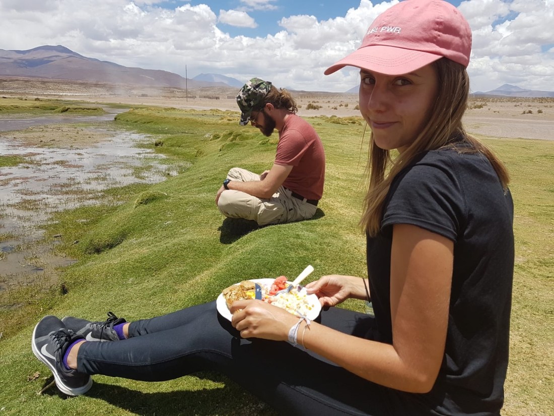 Nous nous réveillons tranquillement vers 7h30, le petit-déjeuner est immangeable: une espèce de friture sèche. C’est ce que mangent les boliviens le matin, ça correspond assez peu à nos goûts !
