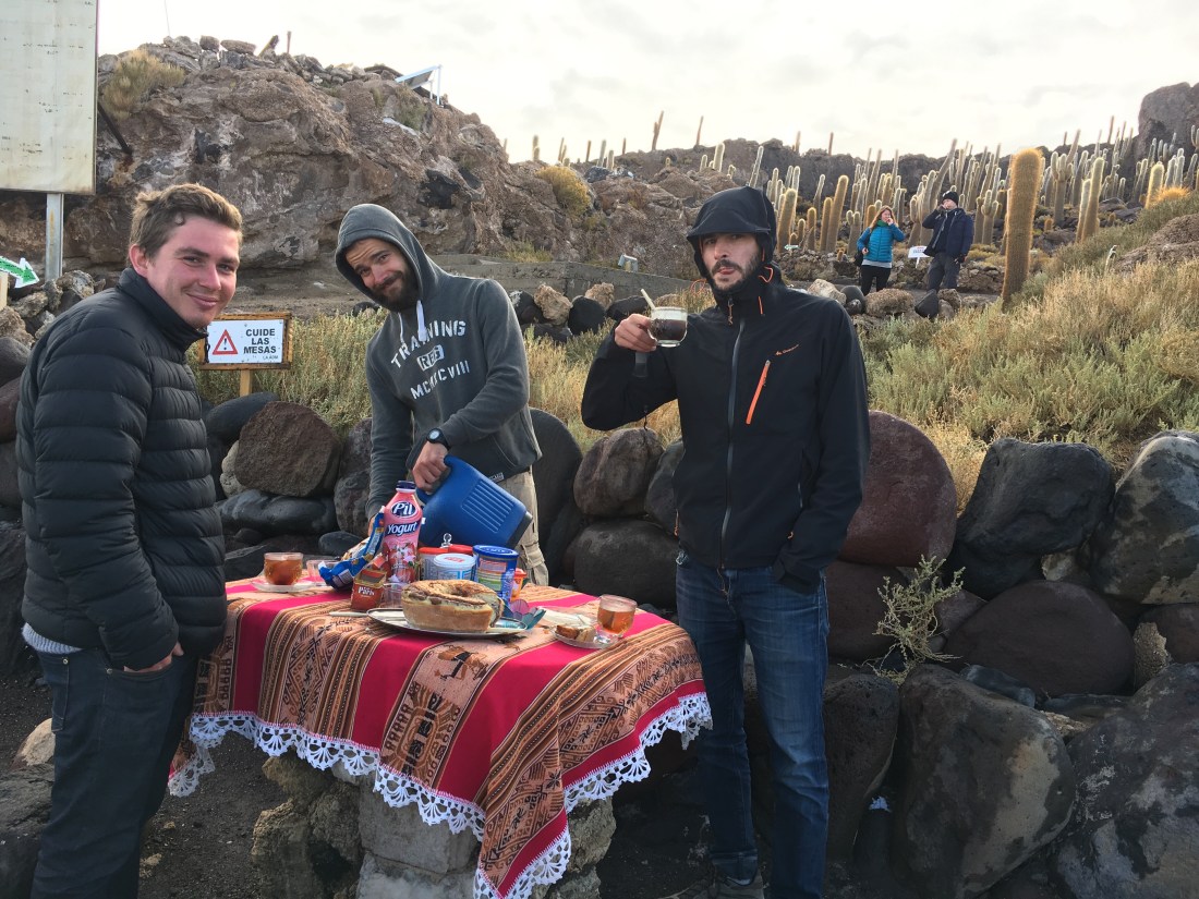 Vers 7h nous revenons au 4×4 où Mabel a préparé le petit-déjeuner, il fait très froid, nous nous réchauffons à coup de café et thé, jusqu’à ce que le guide nous précise que nous n’aurons pas de possibilité de toilettes dans les 3 prochaines heures.