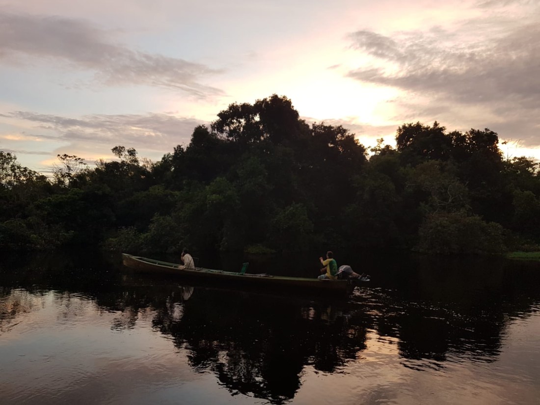 Comme je suis réveillée j’immortalise leur départ à la rame dans la lueur du petit matin.