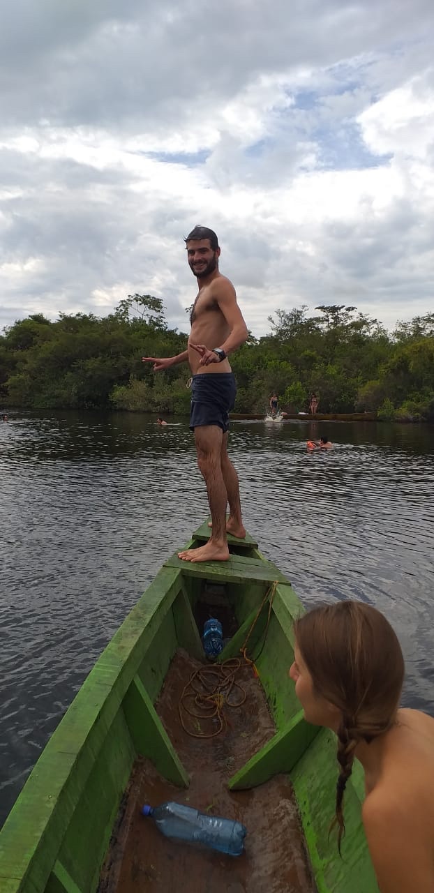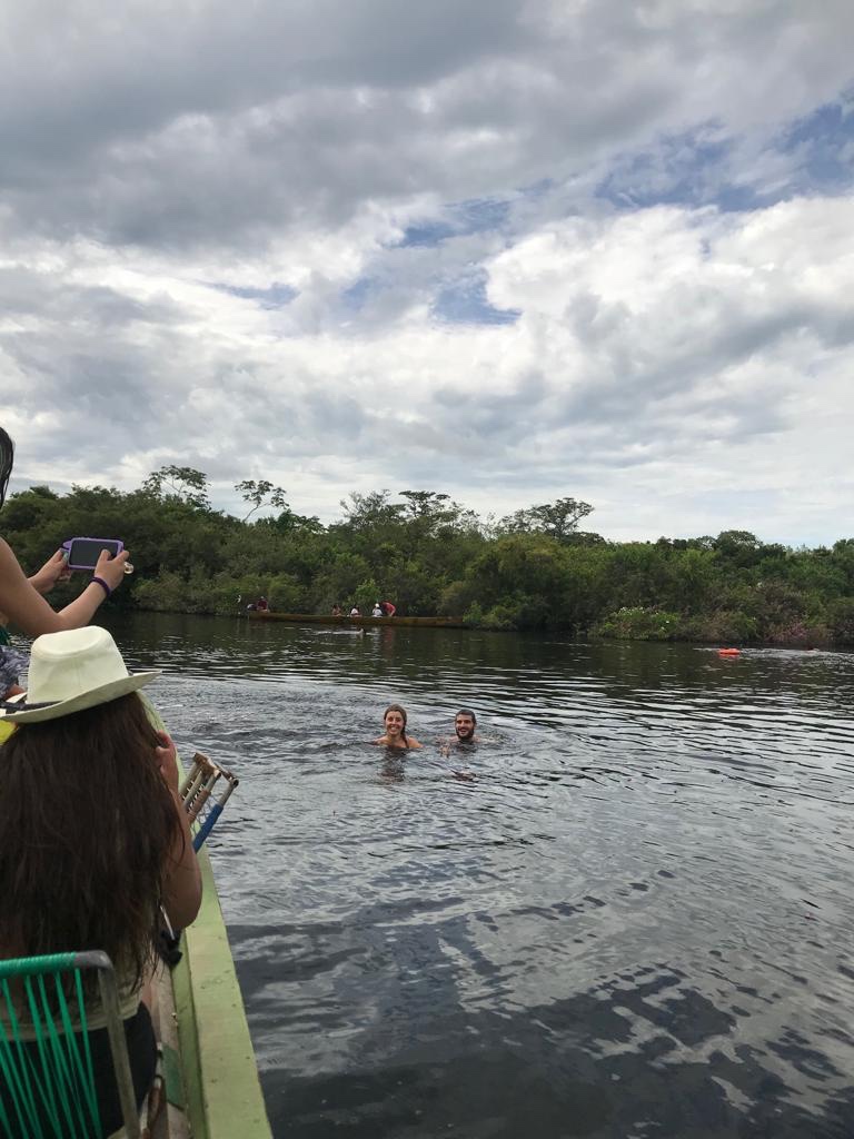 Vient l’heure de la baignade, rendue possible par les dauphins car lorsqu’ils sont là les piranhas et croco ne s’approchent pas.