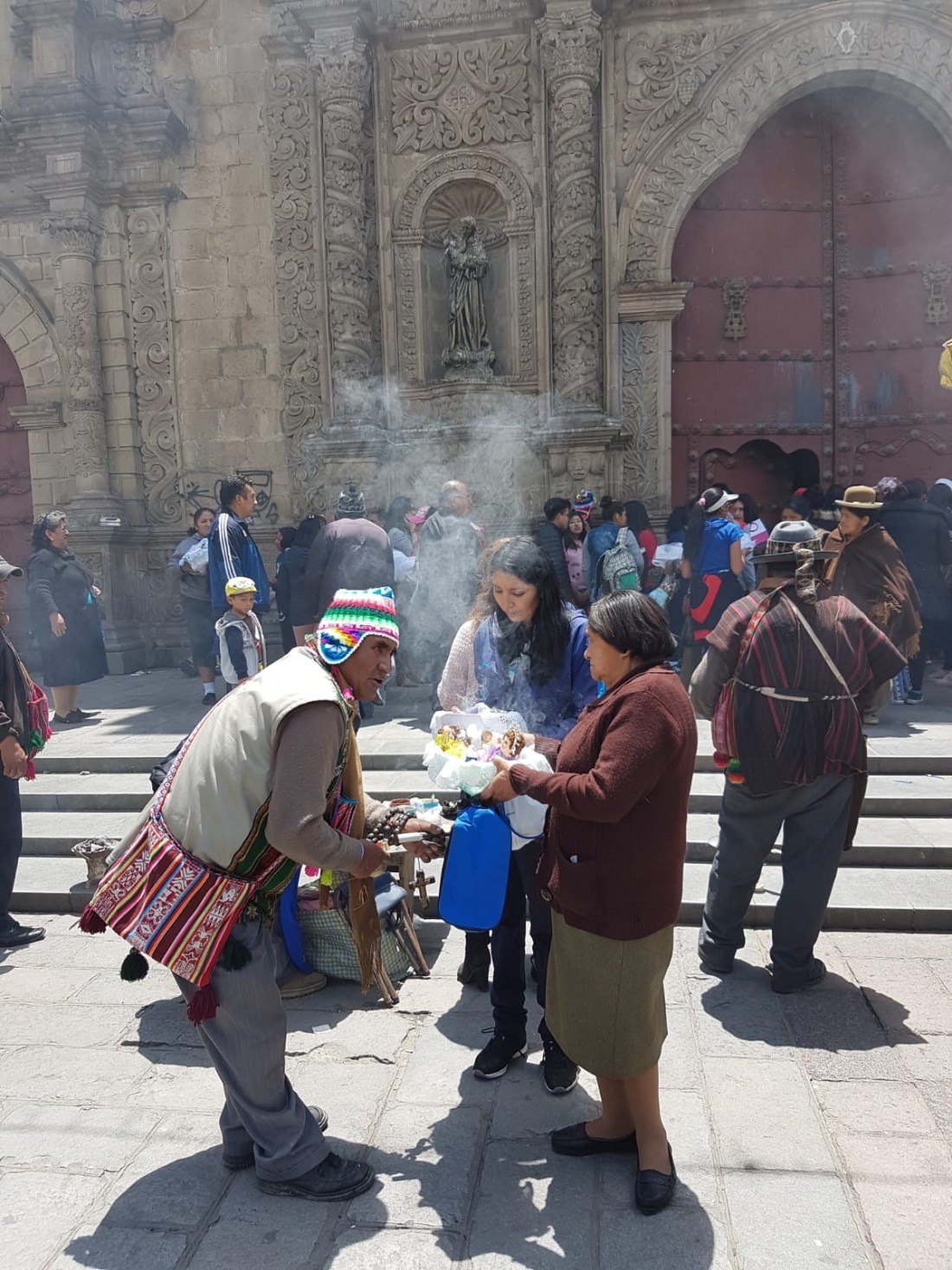 Nous trouvons finalement le marché, ce sont plutôt des stands au bord de la rue. Il y’a des plantes séchées, des pierres, encens mais aussi des fœtus de lamas séchés. Ils sont enterrés dans les fondations des nouvelles constructions cela porte bonheur.