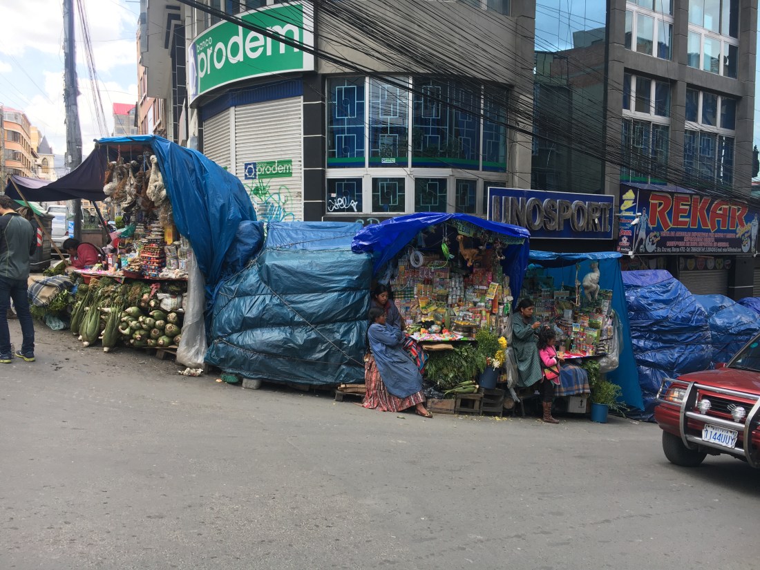 En fait à La Paz il y’a une rue par « spécialités » la rue des tissus, celle des noix, des garagistes …