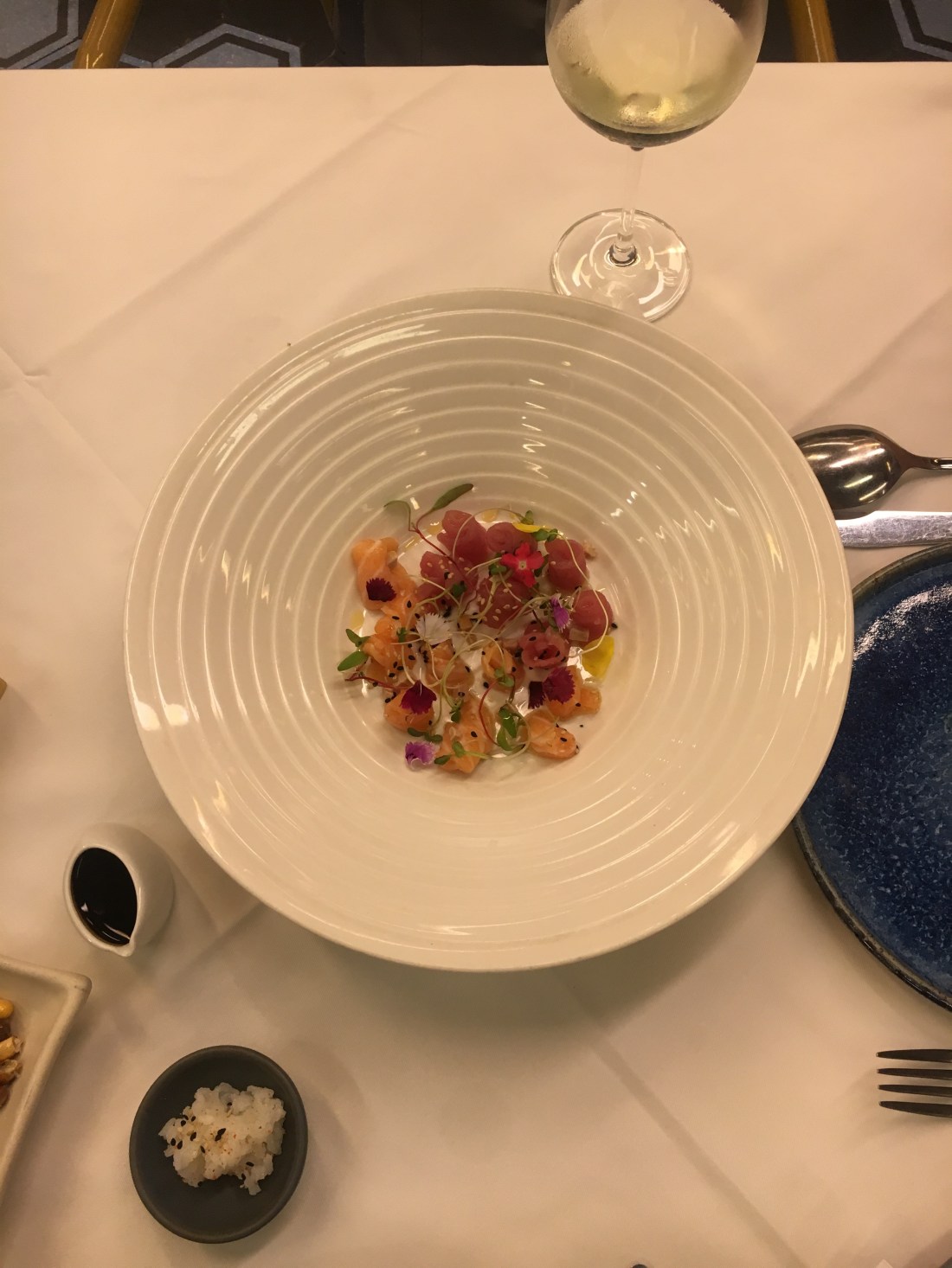 On partage un Ceviche « Nikkei » en entrée, comprenez un Ceviche né de la cuisine fusion Japon-Pérou qui fait la renommée gastronomique de Lima. Dans notre assiette du thon et du saumon marinés dans des agrumes japonais avec quelques éclats de foie gras, un délice.