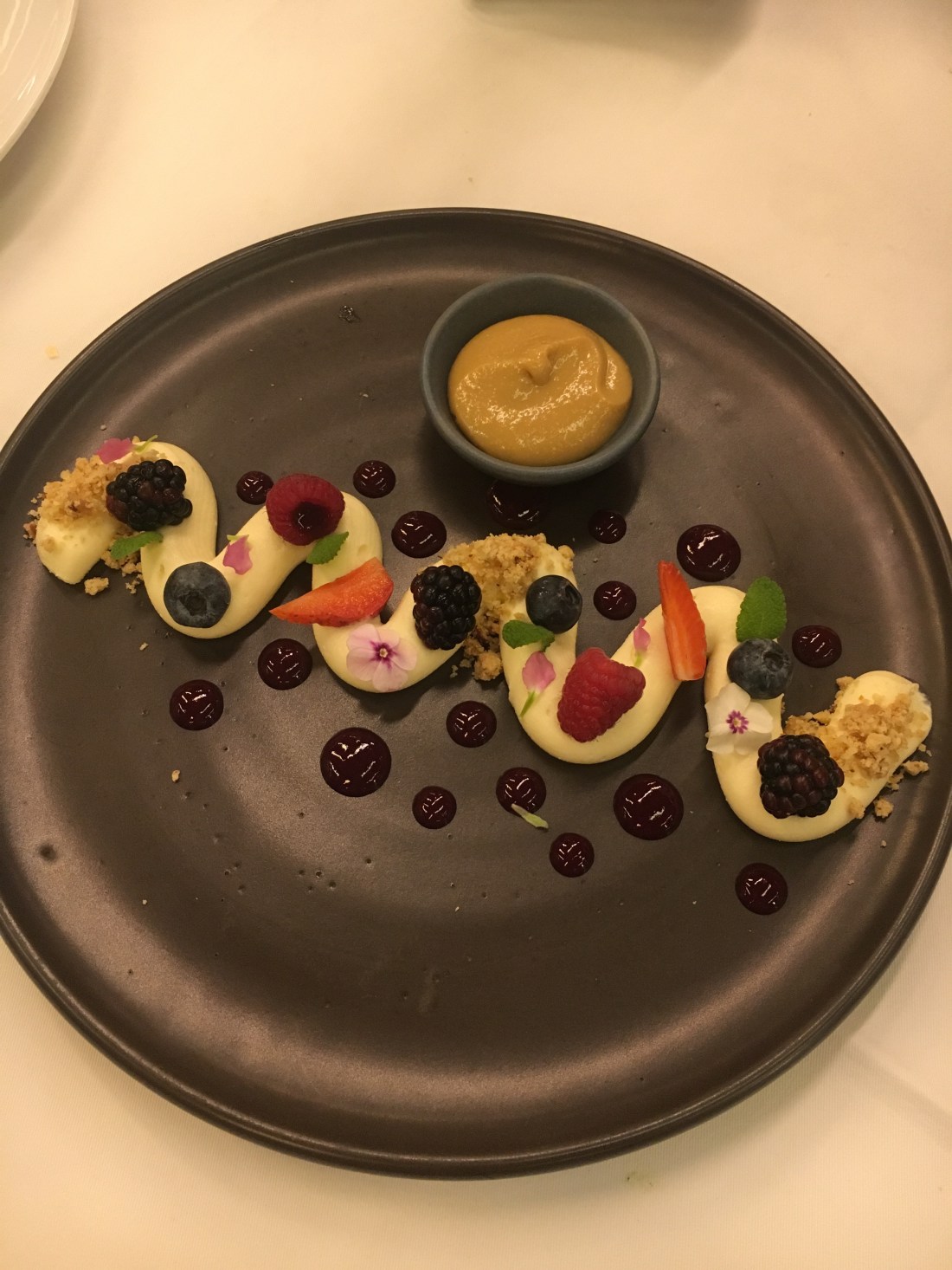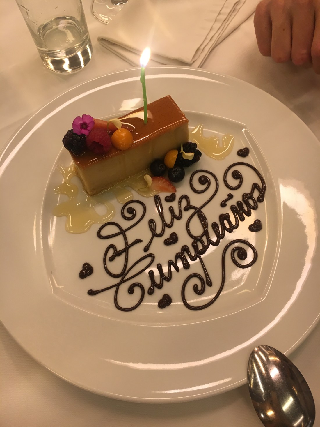 Nous n’avons pas hyper faim et c’est parfait car les portions sont plutôt petites. On craque quand même sur un dessert (et les serveurs oublient la bougie, grrrr).