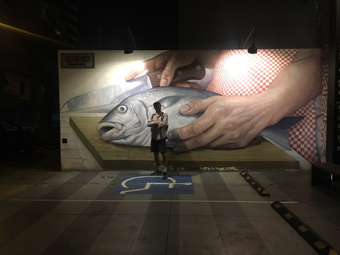 Tout d’un coup il est midi et nous devons partir pour déjeuner, nous avons une réservation dans un super resto de poissons. On marche une petit demi-heure dans les jolies rues de Miraflores et arrivons à Pescados Capitales.